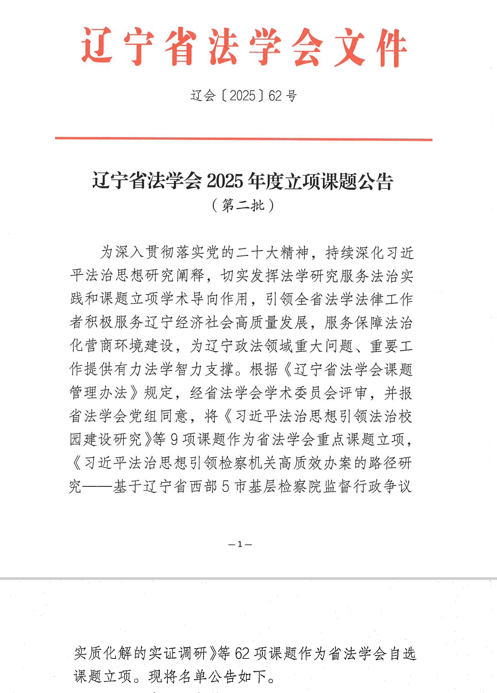 近日,辽宁省法学会公布了2025年度第二批立项课题名单,东北亚研究中心裴兆斌教授、曲亚囡教授、蔺妍副教授、翟姝影讲师申报的4项课题成功获批立项。 本次课题立项经过个人申报、单位推荐、省法学会学术委员会评审、报党组同意,最终确定重点课题9项、自选课题62项。东北亚研究中心此次获批的4项课题聚焦海洋法治前沿领域,涉及海洋综合执法、海洋牧场建设、海上风电开发、海洋生态修复等热点与难点问题,充分体现了东北亚研究中心在海洋法治研究方面的持续深耕和学术影响力。 此次多项课题的成功立项,既是东北亚研究中心深入贯彻落实国家海洋强国战略、服务辽宁海洋经济高质量发展的具体体现,也是推动法学研究与区域发展深度融合的重要成果。下一步,中心将继续发挥学科优势,围绕海洋法治与东北亚区域合作等方向,持续提升科研创新能力,建设高水平法治智库,助力辽宁全面振兴和海洋强省建设。来源:东北亚研究中心撰稿人:王婧晨 责任编辑:翟姝影 审核发布:裴兆斌