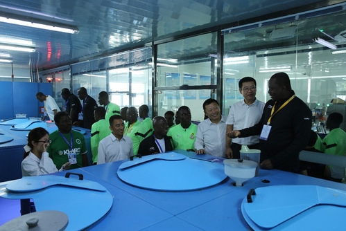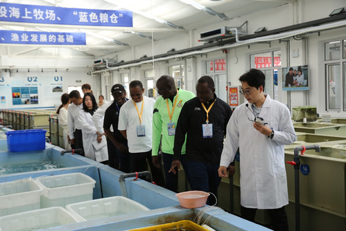 调研期间,Elliot Haruna Alhassan一行先后参观了黑石礁校区海洋强国广场、黑石礁湾·鱼园、教育部设施渔业重点实验室、辽宁省北方水产种质资源与遗传育种重点实验室、农业农村部北方海水增养殖重点实验室——现代水产苗种繁育中心,详细了解了学校在水产种质资源保护与良种创新等方面科研进展与成果转化情况。