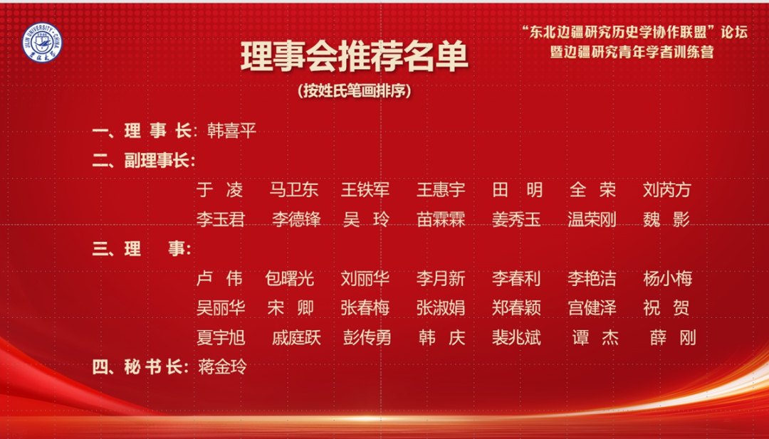 论坛开幕式后,举行了“东北边疆研究历史学协作联盟”成立仪式,选举了联盟理事长、副理事长、理事和秘书长。我校东北亚研究中心主任裴兆斌教授当选东北边疆研究历史学协作联盟理事